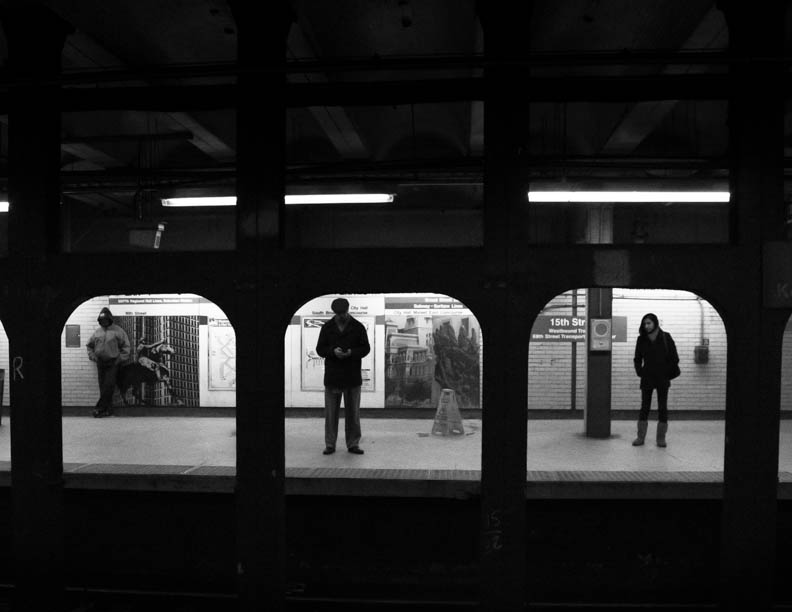 Framing by Shelbie Pletz ← Previous Next → Framing by Shelbie Pletz. Separate, but together: three strangers keep space between one another as they wait for the subway on February 8, 2014 in the Cecil B. Moore station on the Broad Street line.